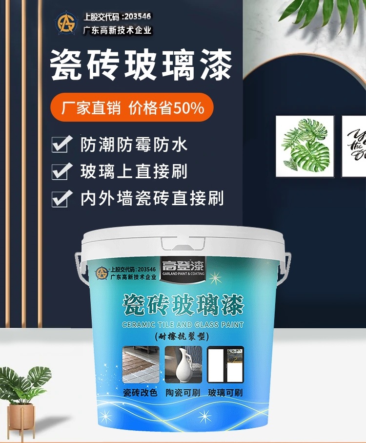 高登瓷磚玻璃漆,防水防霉防潮,施工簡(jiǎn)單,多種顏色可以選擇,內(nèi)外墻瓷磚上直接刷漆,玻璃上直接刷漆。